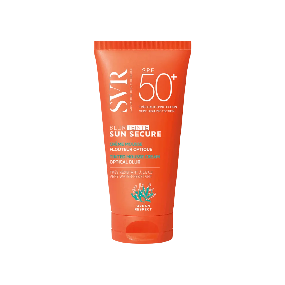 SVR Sun Secure Blur Teinté SPF 50 es un protector solar facial con color y efecto alisador que ofrece protección muy alta contra rayos UVA/UVB e infrarrojos, mientras unifica el tono y difumina imperfecciones. Su fórmula combina filtros solares de amplio espectro y antioxidantes, protegiendo la piel del daño solar y del envejecimiento prematuro.