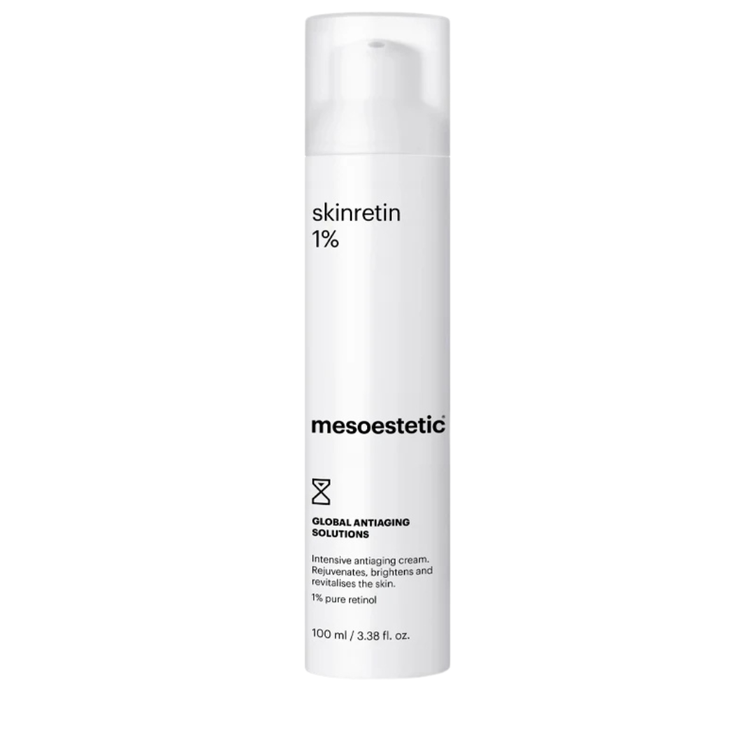 La Skinretin 1 % de Mesoestetic es una crema nocturna de uso profesional con alta concentración de retinol puro (1 %). Ideal tanto para pretratamientos como para potenciar resultados posteriores a procedimientos clínicos, logra:
